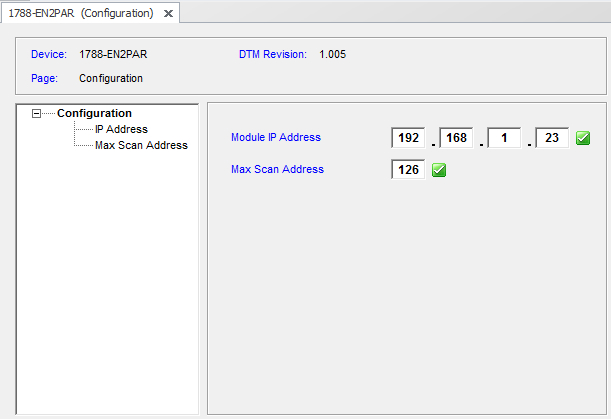 In the Network pane right click R1788-EN2PAR & select Device Functions - Configuration